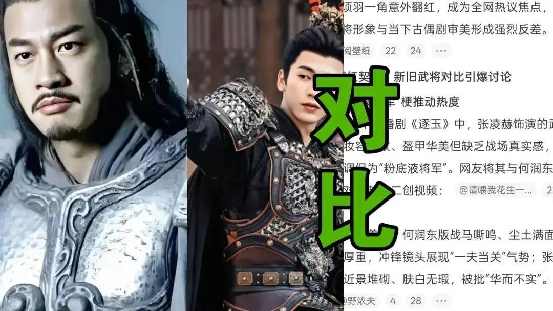 网友对比何润东版项羽的粗粝战损妆、血汗交融的战场真实感,将其推为"古装武将天花板"。