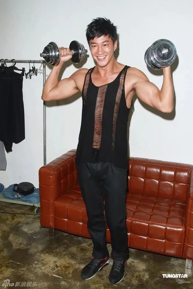 他绑沙袋练习马步、负重挥戟,他在片场随身携带哑铃保持状态。
