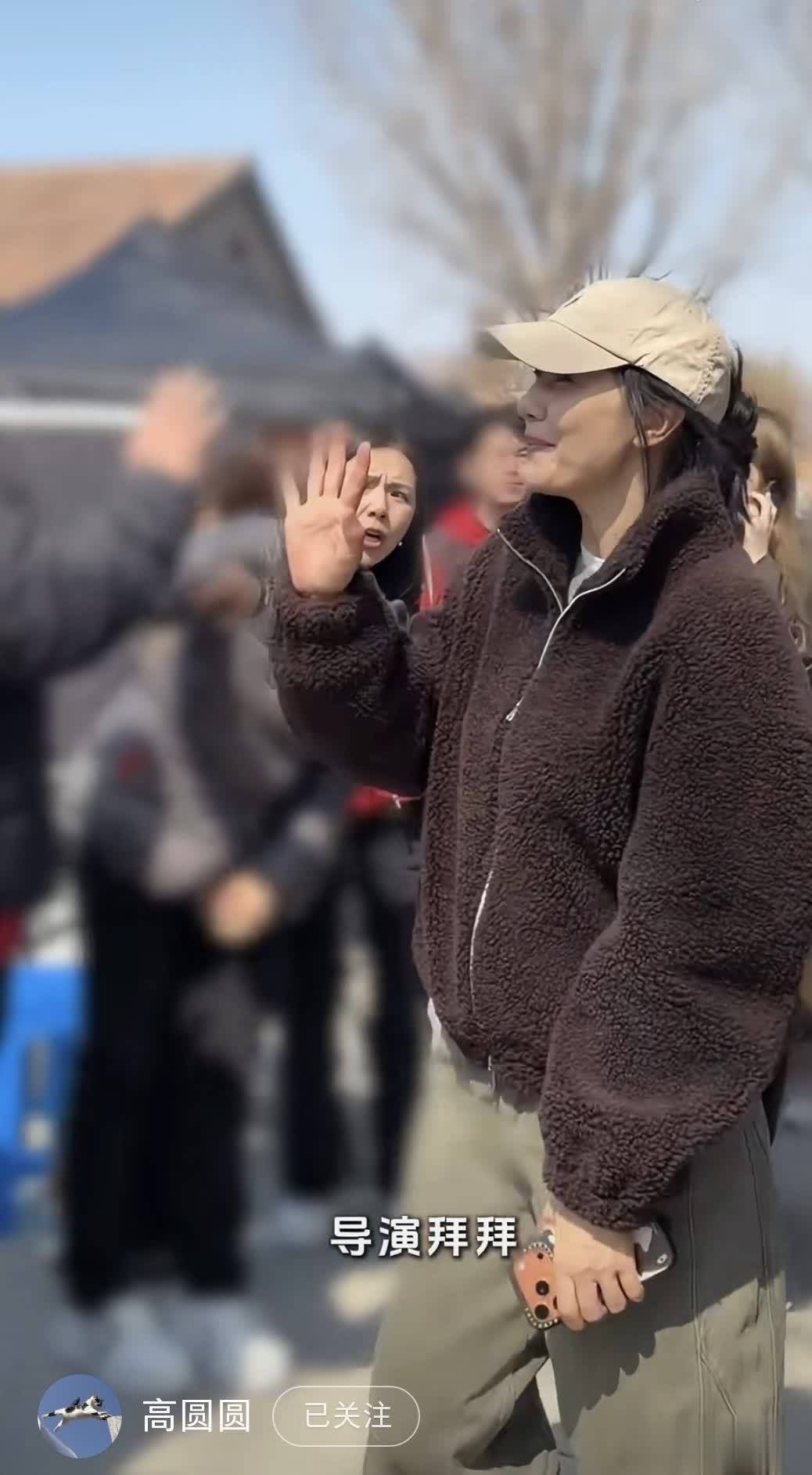 在潍坊的时候,她穿得特别接地气:开机仪式穿件红卫衣,元气又亲和;