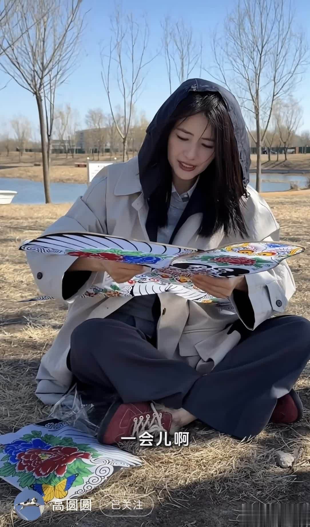 她也顾不上捡,只顾着抬头看风筝往天上飞,笑得眼睛都弯成月牙,一点明星架子都没有,真实得可爱。
